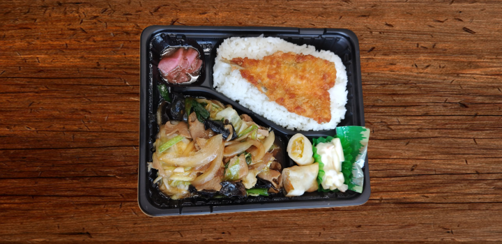 盛ってなんぼ! の「【盛り盛りアジフライ】肉野菜炒め弁当 」