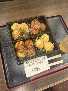 お好み焼きもたこ焼きも東京で食べるものは違い、生地がふわふわしていてとても美味しかったです。