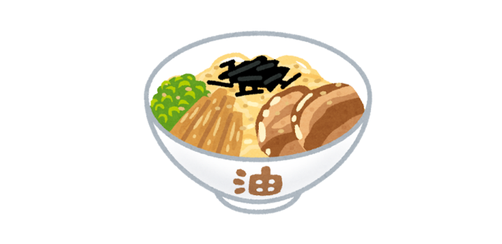 どんぶり一面に背油が降り積もっていました。モチモチとした中太麺とニンニクの効いた濃厚塩ダレが食欲をそそります。
